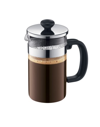 A satisfying alternative to cranking up the automatic drip coffeemaker for a single cup, the Bodum Shin Bistro small coffee press makes delicious coffee with little effort. A blend of heat-resistant borosilicate glass and a stainless-steel rod filter system, the piece turns out coffee in four minutes or less. Simply add water and grounds, wait a bit, and plunge the filter. A fine screen keeps grounds at the bottom while letting natural oils through for optimum flavor. This version of the time-tested design includes a non-slip handle, a stay-cool knob, and a trim see-through beaker for best display of coffee colors. It holds 12 ounces and is safe in the dishwasher. Larger versions are also available. --Emily Bedard